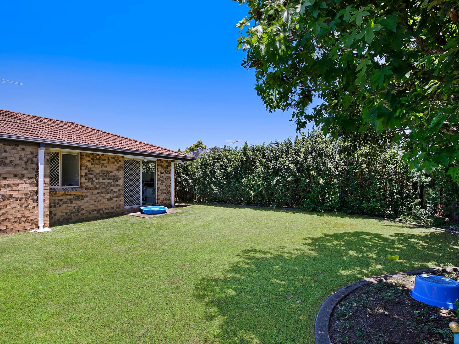 - Side access to a fully fenced backyard with landscaped private gardens.