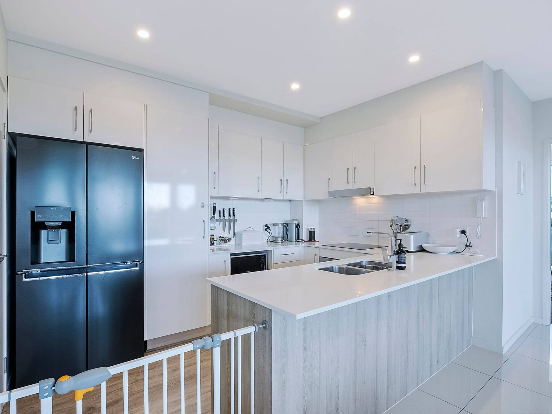 - Modern Kitchen with Stone Benchtop, Breakfast Bar, Dishwasher and Large Pantry