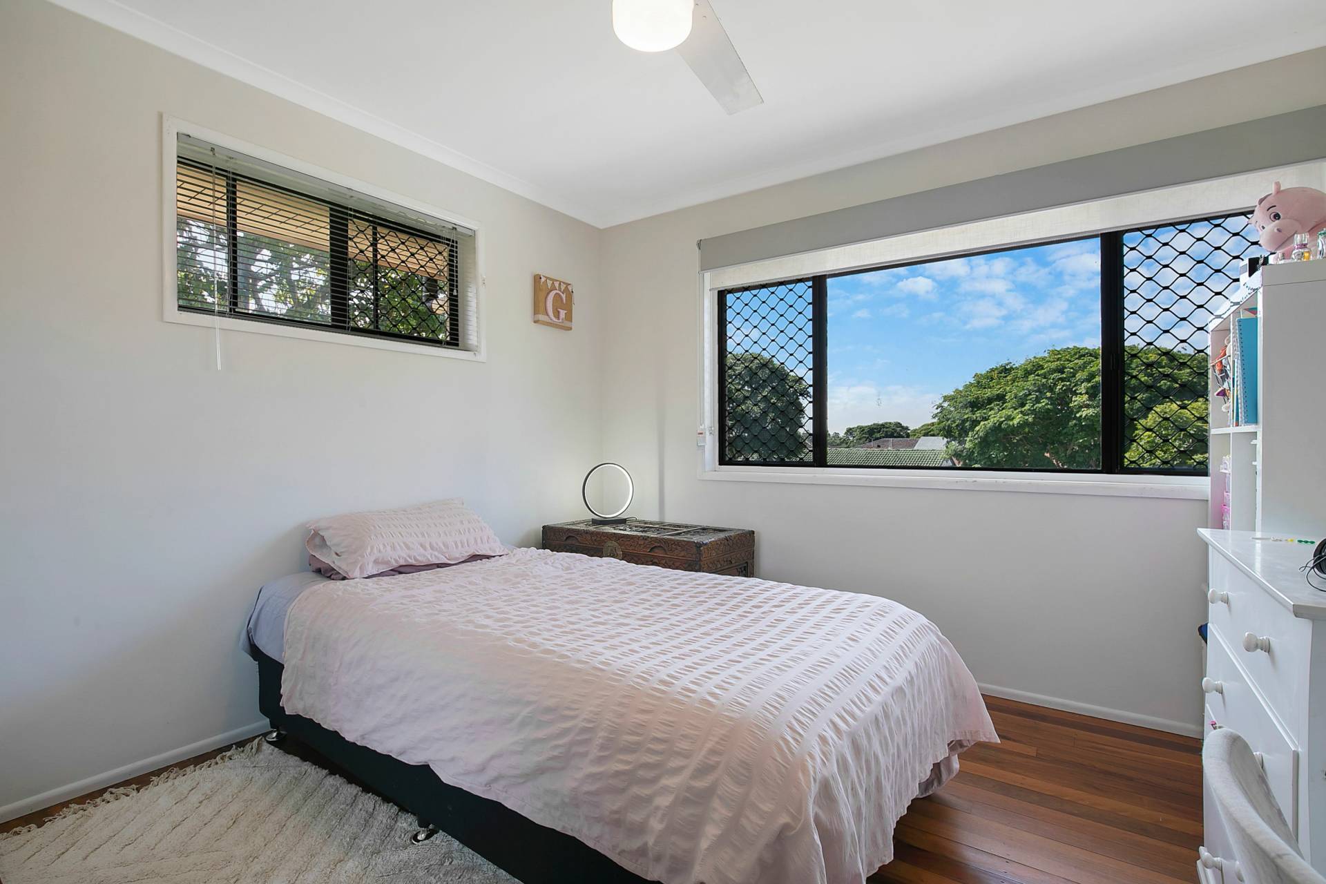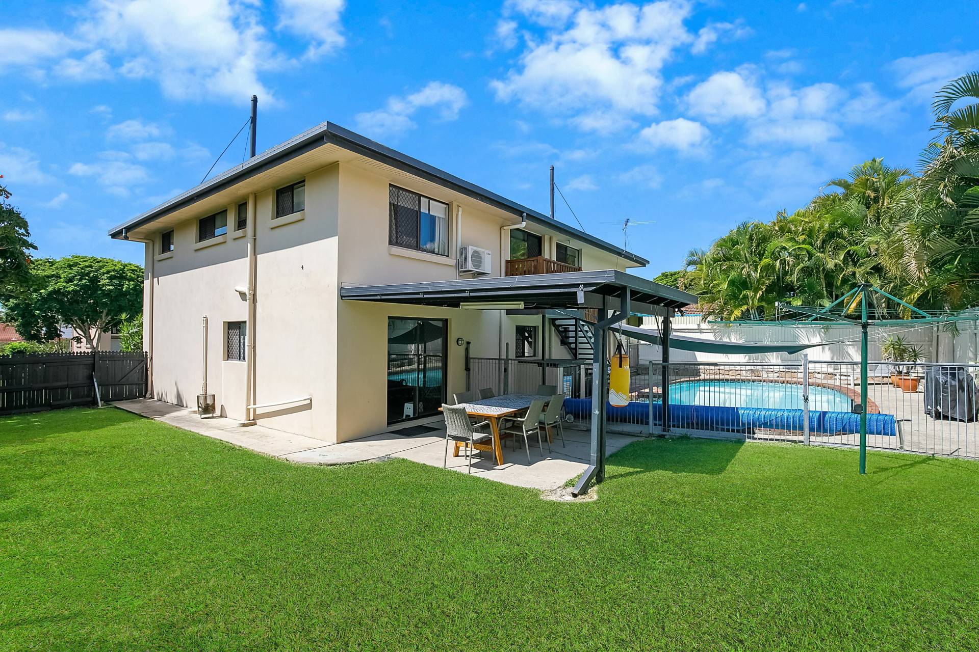 This large rendered family home features 3 built in bedrooms upstairs, open plan lounge and dining, with polished floors, spacious kitchen with large pantry, room for a 2-door fridge, dishwasher and casual meals area. Catch the bay breezes from this large balcony with north aspect. The internal stairs lead to a spacious family room, a large study and extra room that could be used for another bedroom, large laundry. Sparkling in-ground swimming pool overlooking the great backyard and large garden shed. Extras include 6KW solar panels, air conditioning, side access for boat or caravan. Walk to Boondall state school, Nudgee College, train, and all other amenities.