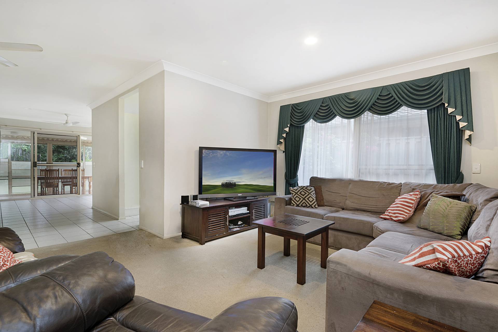 Open plan living areas, separate lounge, master bedroom ensuite, built in robes with ceiling fans. The three other bedrooms have built in robes.