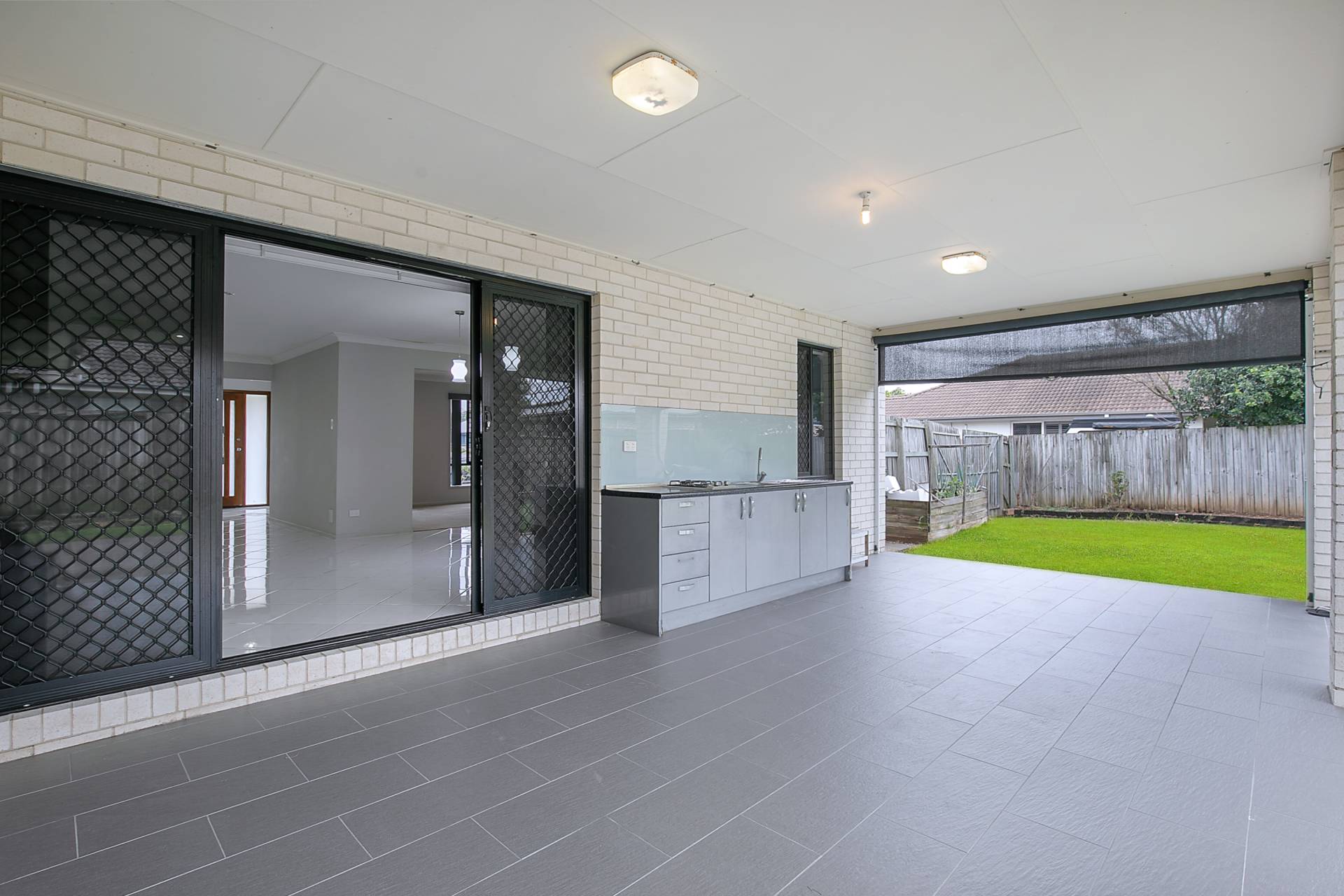 • Tiled entertainment area with BBQ, outdoor kitchenette including sink and stove