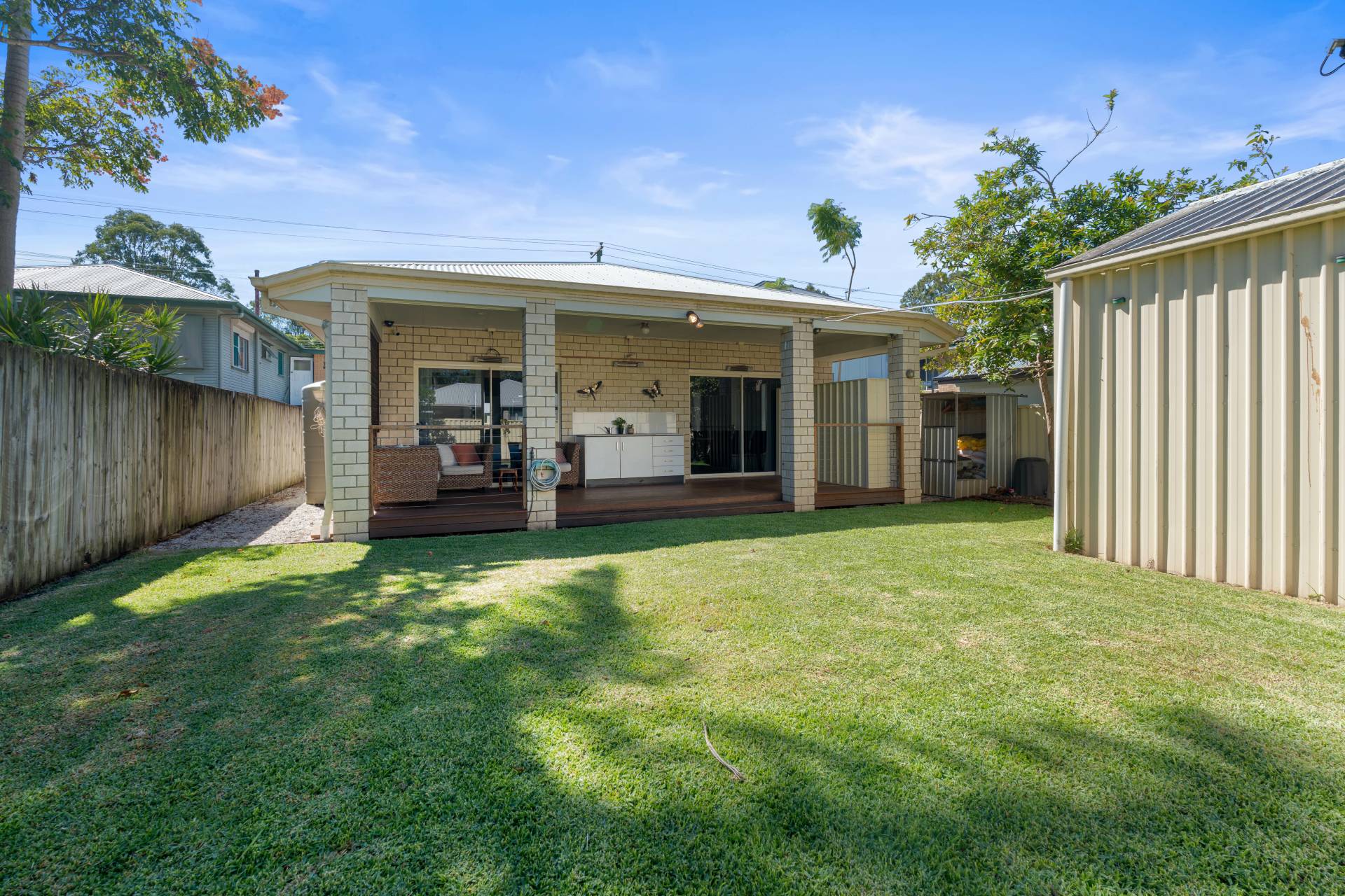• Fully fenced backyard with a generous layout and huge additional storage area