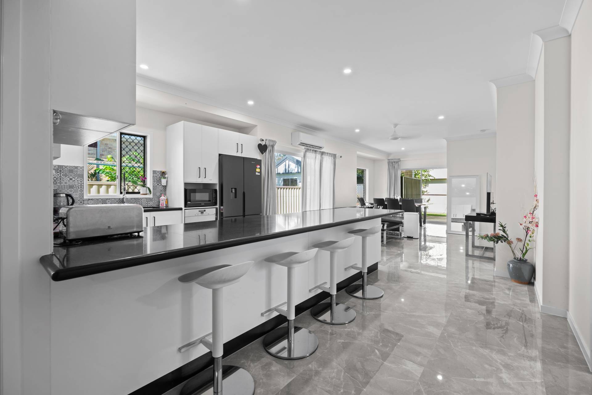 • High ceilings and elegant downlights throughout, creating a bright, open feel